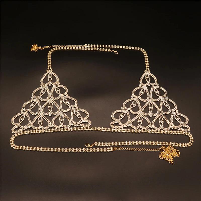 Crystal Rhinestone Heart Body Chain Harness and or Bling Bikini Lingerie